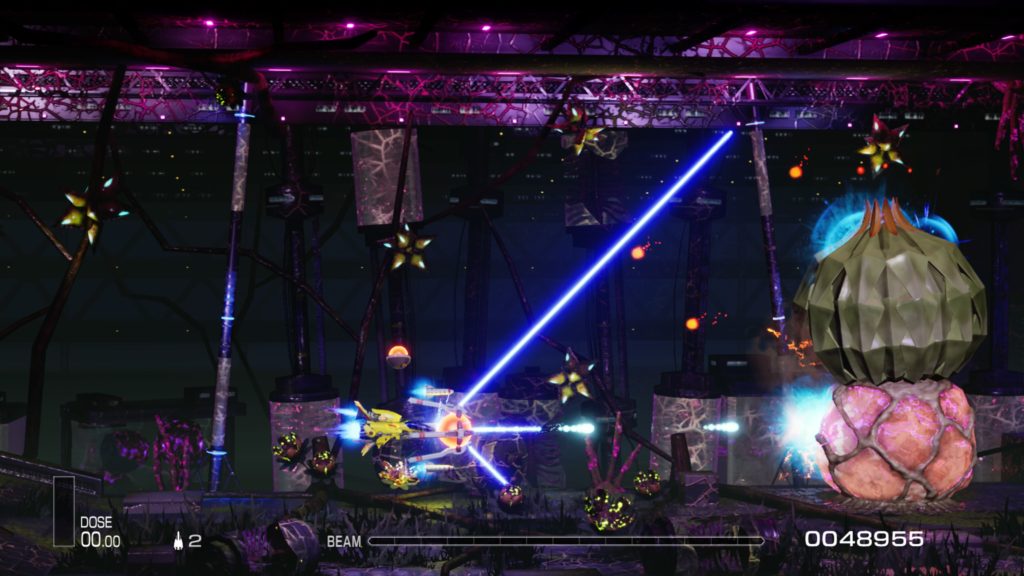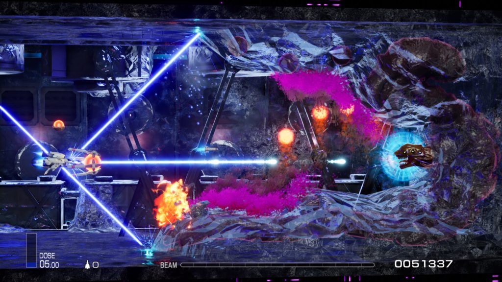 Le principe de R-Type est simple à première vue : on choisit son vaisseau et on parcourt de manière horizontale des niveaux en dézinguant tout ce qui bouge et surtout en évitant les différents projectiles ennemis qui varient en termes de formes, de vitesse et de cadence ! Un module détachable pour vous aider à tirer vers l’avant / l’arrière, un super coup chargeable, mais aussi la possibilité d’accélérer et freiner le vaisseau sont de la partie afin de vous aider. Bien sûr, les power up à ramasser permettent des combinaisons de tirs très intéressants, et un aspect tactique en ressort car certaines armes sont clairement plus utiles dans certaines situations !