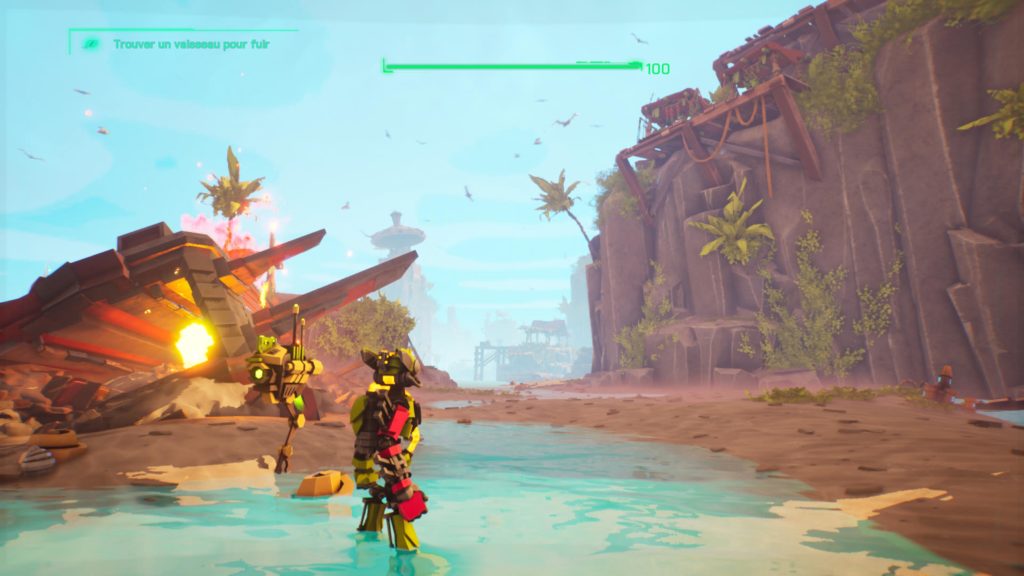 Les morceaux sont entraînants et dynamiques pendant les phases d’action, tandis que des mélodies plus douces et atmosphériques accompagnent les moments d’exploration et de réflexion. La bande sonore d’Akimbot est un véritable atout qui renforce l’immersion du joueur dans l’univers du jeu. J’ai été personnellement très surpris d’entendre de la psy-trance et même des tracks de tribecore ! Cerise sur le gâteau, le doublage francophone est franchement excellent et sauve un peu les protagonistes de leur manque de personnalité au niveau du character design !