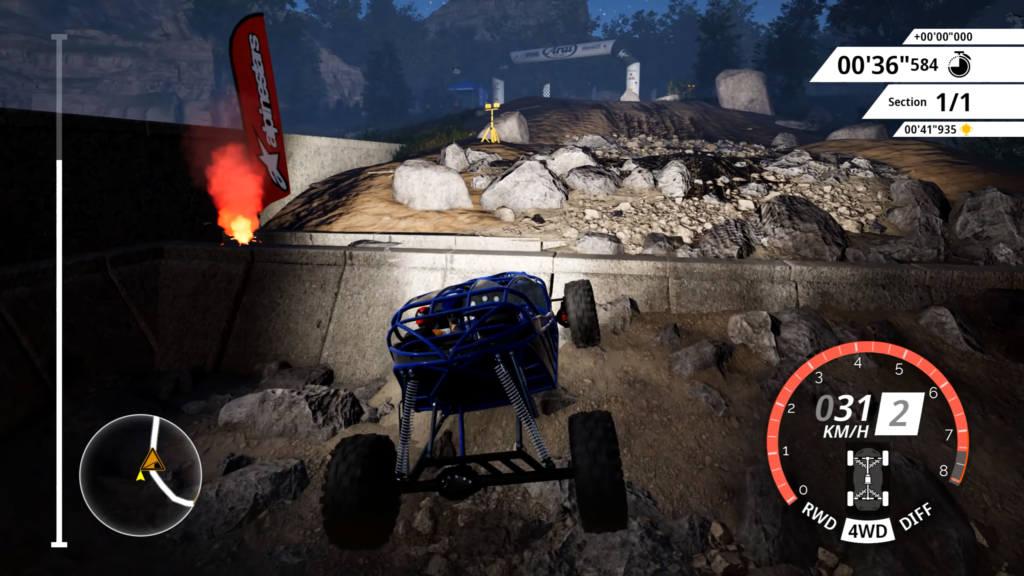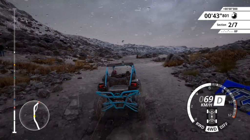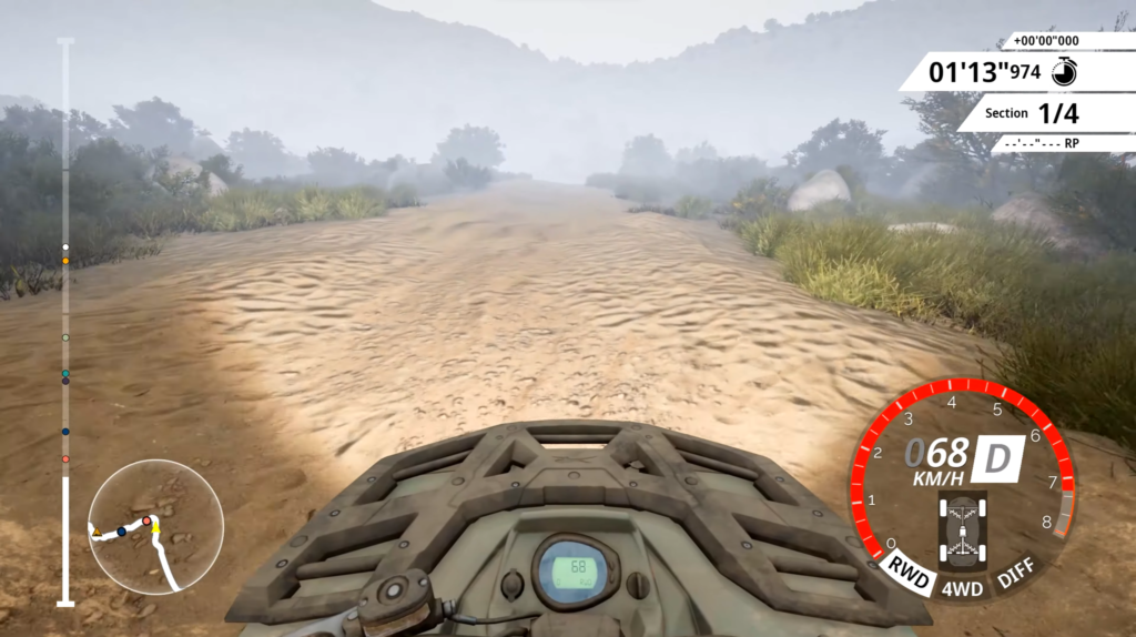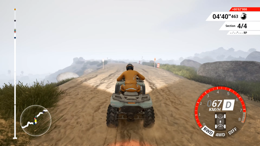 Mais manette en main, ça dit quoi ? On déchante assez vite en termes de fun, en commençant par le léger lag dans l’input des touches, suivi par une caméra limitée qui n’offre pas assez de possibilité pour bien aborder les obstacles et particularités de pistes qui sont franchement bien conçues en matière de level design, mais qui sont au final gâchées. La physique des véhicules ne propose pas des sensations intéressantes, c’est bizarre dans les trois catégories de véhicules proposés : UTV, Rock Bouncers et ATV. C’est assez dommage que l’on ne sente pas plus l’aspect off road que ça, on aurait vraiment espéré que la topologie du terrain se reflète dans le contrôle du véhicule, mais à la place de ça on a l’impression de conduire un jouet avec des réactions très imprédictibles, on a pas l’impression de pouvoir dompter et encore moins maîtriser son véhicule !