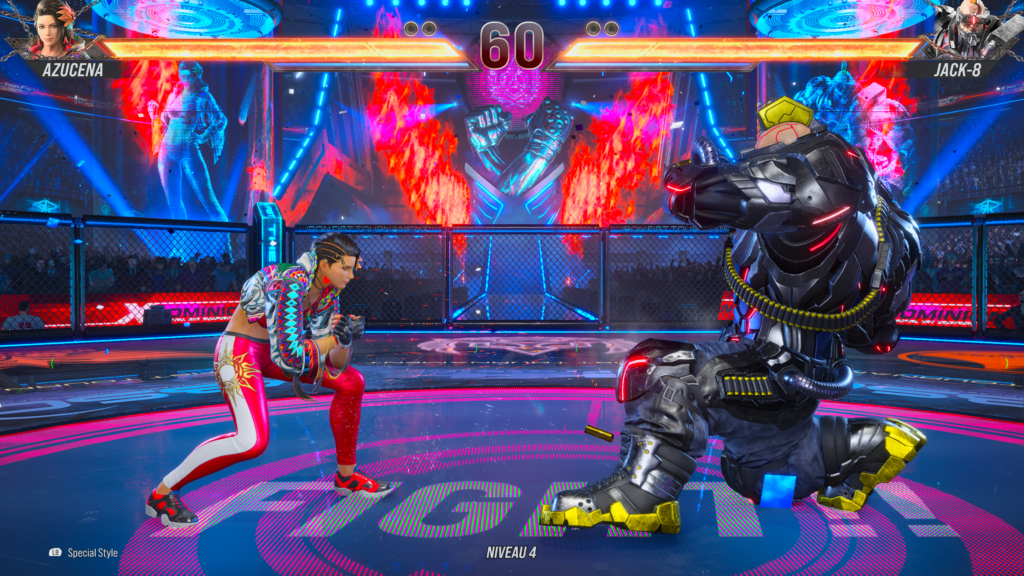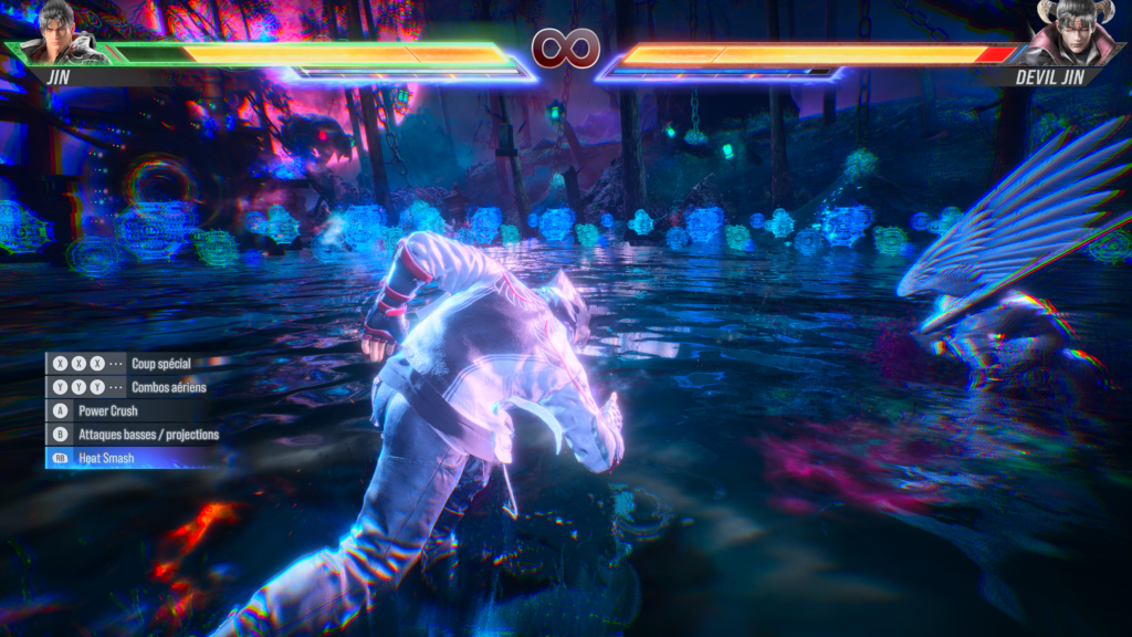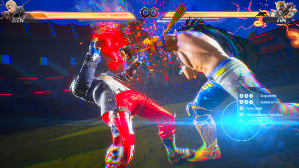 Avec le Unreal Engin 5, Tekken 8 se targue de proposer une expérience visuelle très chatoyante ! D’une part avec les cut-scènes très orientés action et abusant des plans cinématographiques. Les effets spéciaux sont qualitatifs, les feux d’artifices, la fumée, les flashs lumineux et l’éclairage ajoutent beaucoup d’immersion visuelle au titre. Un travail a été fait sur les animations des personnages, très variées et franchement impressionnantes, mettant ainsi beaucoup de peps lors des affrontements, mais aussi les petites cutscene avant et après les combats !