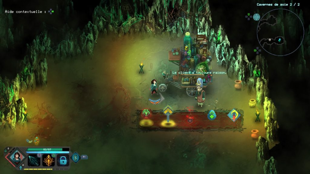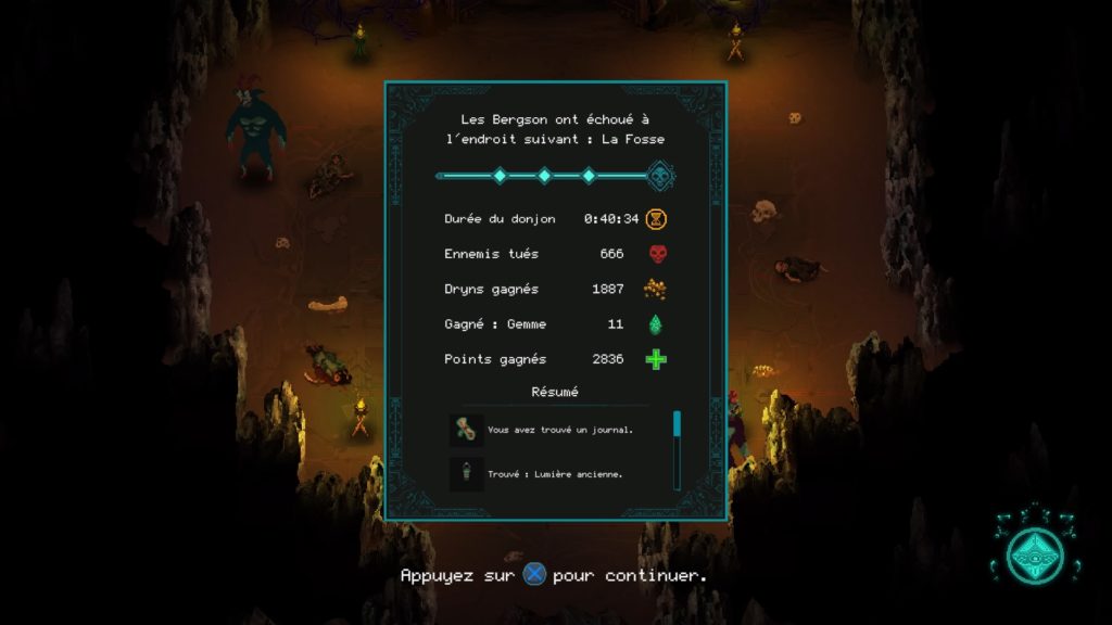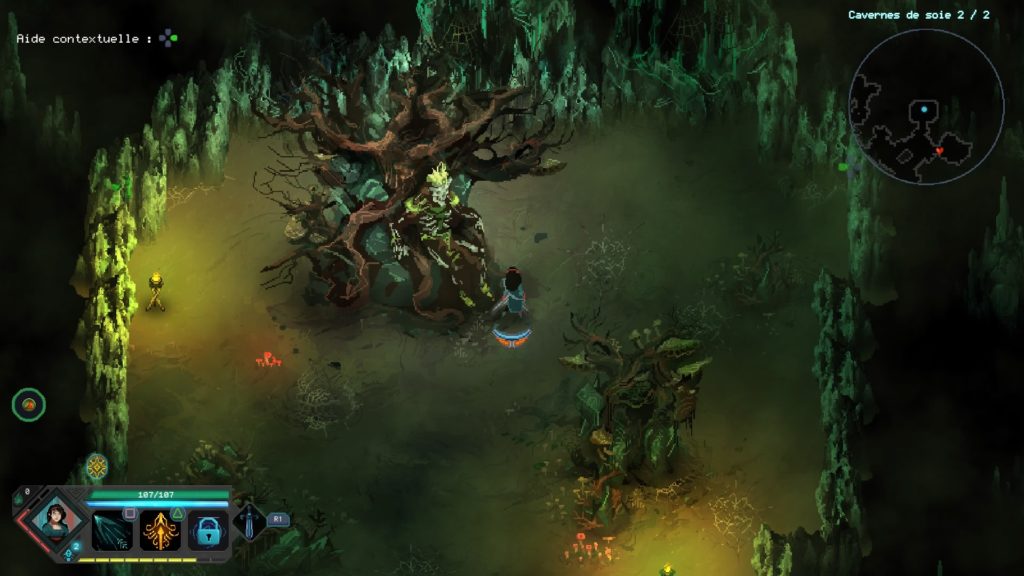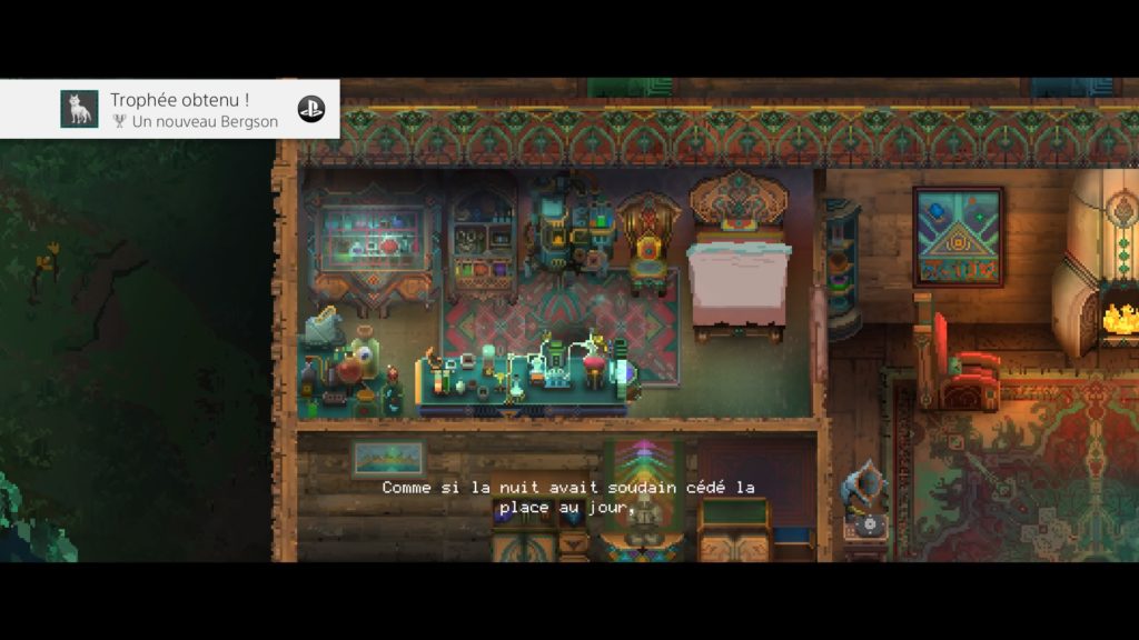 Les jeux du genre exigent souvent de recommencer encore et encore les mêmes niveaux pour améliorer ses personnages, au détriment d’une cassure au niveau de la mise en scène et du scénario. Ce n’est pas le cas dans Children of Morta, dans le sens où on débloque des pans scénaristiques après presque chaque run ! C’est plutôt bien pensé et rompt clairement la monotonie du concept plutôt répétitif de ce genre de jeux ! De plus, on peut partager cette aventure avec un autre joueur en local !