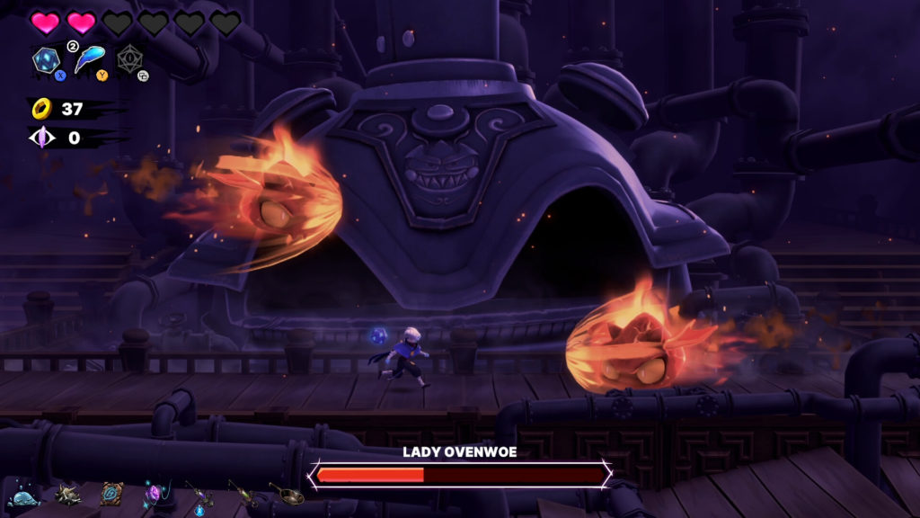 En ce qui concerne les ennemis et les boss, il faut avouer que le bestiaire est assez maigre au fond, on retrouve beaucoup de variations d’ennemis, certes, mais on quand même l’impression de faire le tour au fil des trois biomes. Malgré leur aspect parfois enfantins, les ennemis sont assez coriaces, mais sans pour autant être imbattables, le jeu reste juste ! Même si je leu proposé une excellente durée de vie pour le prix, notamment avec ses défis, on aurait aimé un peu plus : un peu plus d’ennemis, d’armes et d’environnements, car le concept est franchement sympa !