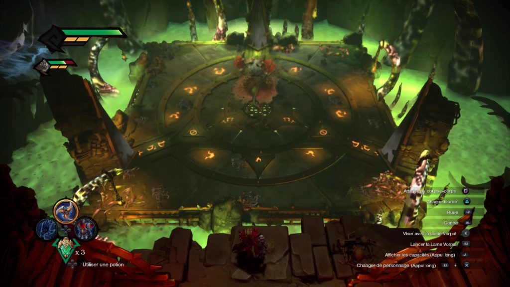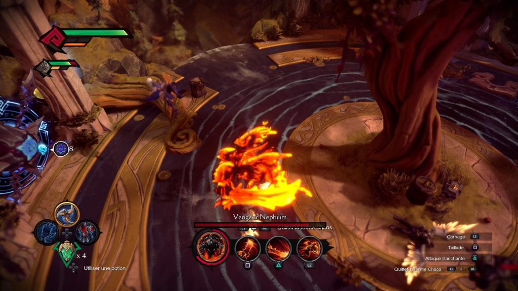 Présenté comme un Diablo-like par beaucoup de Youtubeurs qui ont préféré travailler leurs jeux de mots plutôt que de jouer au jeu, Darksiders Genesis propose plutôt une expérience de Beat’em Up à la DMC que d’un Diablo ! On écrase des hordes de créatures démoniaques soit au corps à corps, soit à distance en fonction du personnage que l’on peut changer d’une simple pression sur L1 et Croix ! Chaque personnage a ses compétences à récupérer au fur et à mesure des 16 chapitres du jeu. L’astuce dans le gameplay est d’utiliser certaines compétences d’un personnage puis switcher vers l’autre personnage pour un maximum d’efficacité. C’est fun, addictif et quand on a compris que ce n’est pas un jeu à la Diablo ou Torchlight, on ne peste absolument pas sur le manque de loot comme certains critiques ont pu noter. Vous récupérez du loot dans Bayonetta ou DMC ? Non, et Darksiders Genesis non plus.