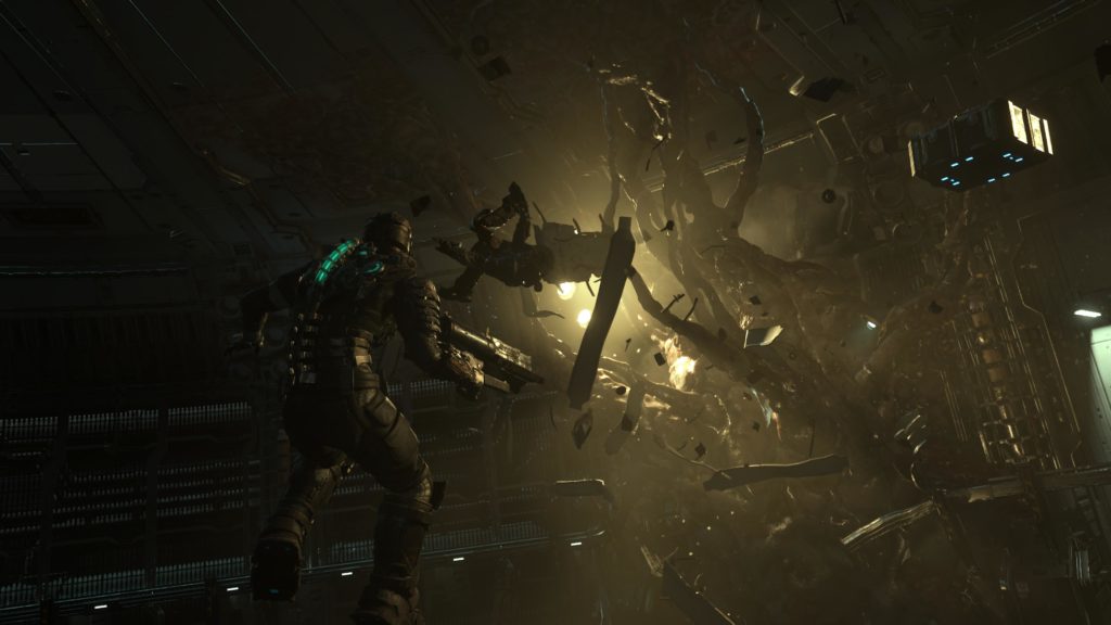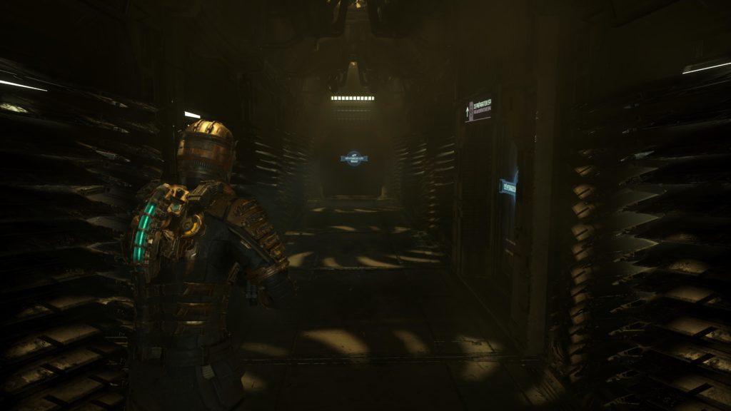 Un vaisseau qui se voit agrandi pour le remake ! Des nouvelles pièces ont été ajoutées, voir même des passages entiers qui ont été rajouté pour plus de frissons et de bonheur ! D’ailleurs, Dead Space emprunte le principe de déplacement en apesanteur du second opus pour remplacer les phases de plateformes où il suffisait simplement de sauter d’une à l’autre ! Un ajout qui puise des suites de la franchise, et on est content qu’ils aient repris que le meilleur de cette suite…