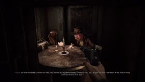 C’est assez dommage car la bande-son est incroyable. Les bruitages dans l’asile sont étouffants, parsemés de moments calmes qui rappellent sans arrêt que le silence c’est le bruit qu’on enchaîne. Des nappes de synthétiseur viennent titiller les oreilles du joueur dans un style très orienté Power Electronics entrecoupé d’arrangements néo-classiques. Les mélomanes identifieront à coup sûr certaines inspirations comme Coil, Haus Arafna, Deutsche Nepal… La plupart du temps ces éléments musicaux comment avec délice aux phases de jeu excepté pour un moment particulier dans lequel Black parcours un cimetière avec une chanson pop en fond sonore. Faute de mauvais goût ou est-ce que le cerveau de Black lui joue un mauvais tour ?