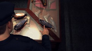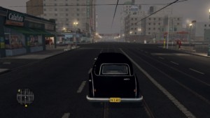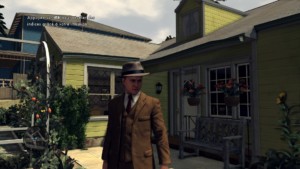 Niveau gameplay, L.A. Noire propose un monde semi-ouvert. On ne peut parler de monde ouvert à proprement parlé, en effet, même si le joueur peut se balader librement dans l’environnement du jeu, il n’y a absolument aucune activité annexe aux missions principales, les missions DLCs viennent s’intercaler dans la trame scénaristique. C’est assez dommage, on aurait espéré des nouveautés à ce niveau, surtout que flâner n’apporte pas énormément d’émerveillement, on a un impression de vide : peu de passants et de voitures quand on s’écarte des quartiers du centre ville. Les missions en elles-mêmes s’articulent autour de phases de découverte d’indices et d’interrogatoires, ponctuées par des phases de tirs et / ou de filatures / courses-poursuites à pieds ou en véhicules. L’ajout des fonctionnalités du pavé tactile PlayStation 4 est un petit plus certes, mais ne change en rien l’expérience du jeu, il permet juste de scruter les indices sous tous leurs angles, mais on fini vite par le faire avec les joysticks comme sur les générations précédentes de consoles qui ont accueilli LA Noire à l’époque.