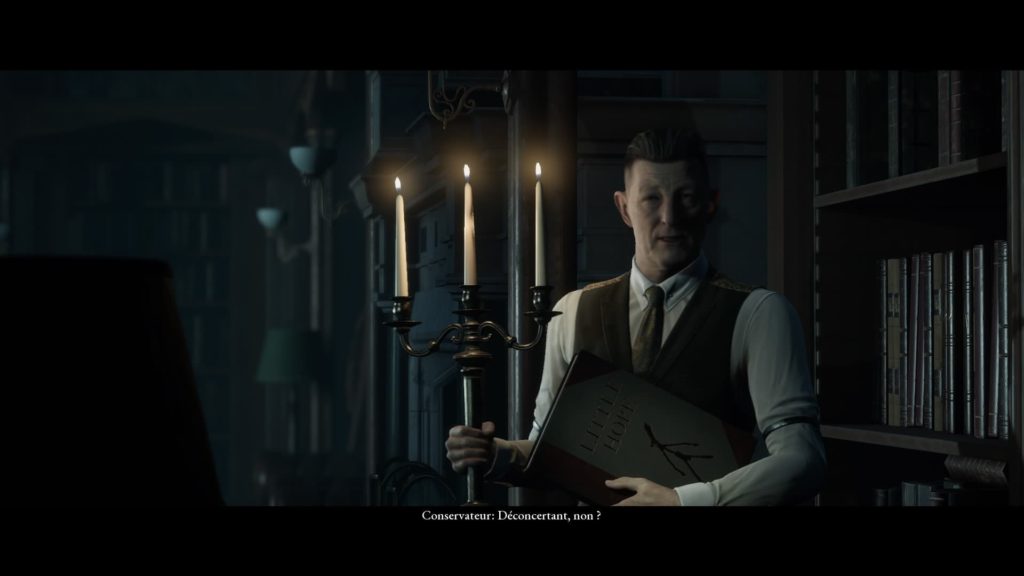 Niveau ambiance sonore, le constat est en demi-teinte. Il y a des soucis au niveau des doublages, même si ceux-ci s’avèrent convaincants, ils sont parfois buggés : au début on n’entend pas les voix, ensuite, le doublage peut passer du français à l’anglais sans aucune raison, et d’une phrase à l’autre. C’est dommage car les bruitages et surtout les musiques de fond mettent énormément dans l’ambiance. Que ça soit les jumpscares bien appuyés par des effets sonores, ou les tracks de Dark Ambiant avec ses nappes de basses et d’instruments horrifiques, on peut dire que ça passe vraiment bien !