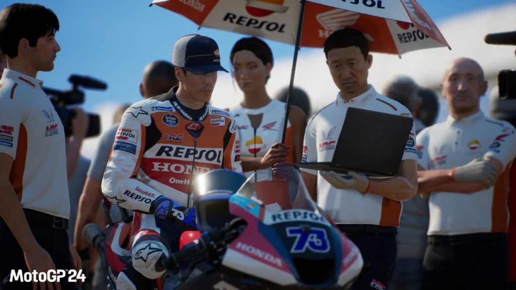 MotoGP 24 ne dispose pas d’un scénario à proprement parler. Le jeu se concentre sur l’expérience de course et propose différents modes de jeu, dont un mode Carrière complet permettant de vivre une saison complète en incarnant un pilote MotoGP, Moto2 ou Moto3. Vous pourrez créer votre propre avatar, rejoindre une écurie et gravir les échelons du championnat du monde. Vous enchaînez les courses, les essais libres et les qualifications, gérez votre staff technique et négociez vos contrats. Vos performances en piste ont un impact direct sur votre progression. Vos choix stratégiques et votre gestion de course sont également cruciaux pour atteindre vos objectifs. Le mode Carrière propose une gestion réaliste des finances et des contrats, vous plongeant au cœur du monde palpitant du MotoGP. Ce mode carrière est clairement le point fort du jeu et on sent que les développeurs n’en sont pas à leur premier essai !
