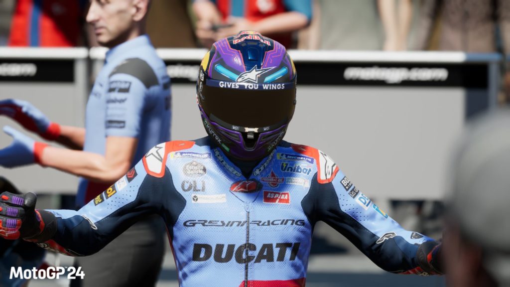 Le gameplay de MotoGP 24 se veut réaliste et accessible. Le pilotage est précis et exigeant, nécessitant une maîtrise parfaite de l’accélération, du freinage et des trajectoires. De nombreux niveaux de difficulté sont disponibles pour s’adapter à tous les styles de joueurs. Chaque moto a ses propres caractéristiques et nécessite une maîtrise parfaite, c’est d’ailleurs assez passionant de littéralement apprivoiser les bécanes et leurs différentes façons de piloter avec et doucement les maitriser.