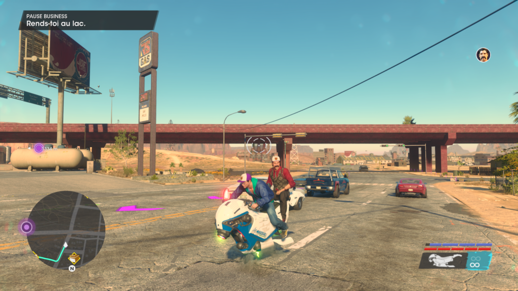 Niveau bande son, le jeu propose divers styles avec à chaque fois une sélection plutôt bien fournie de titres ! Petite préfèrence pour la playlist de la radio metal qui propose des titres de la maison de disque Nuclear Blast : Slayer, Hatebreed, Meshuggah, Kataklysm… un vrai bonheur ! Pour le reste, il y a bien sûr du rock, du rap, de l’EDM, de la musique latino et même de la musique classique de quoi satisfaire tout le monde ! Les doublages sont exclusivement anglais et ont tendance à être surjoués, ce qui m’a encore plus sorti du jeu. Les bruitages eux sont assez commun, rien de spécial à commenter dessus.