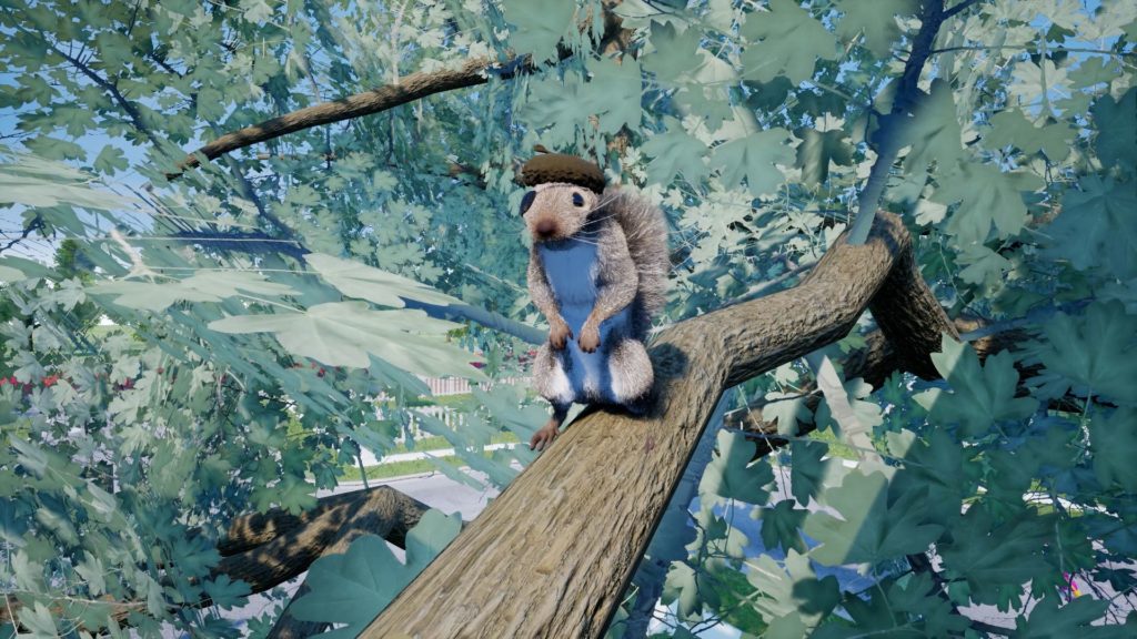 Squirrel with a Gun utilise un style graphique cartoon coloré et stylisé. Les environnements sont variés et détaillés, allant des forêts luxuriantes aux zones urbaines animées. Le design des personnages est également réussi, avec un accent particulier sur l’expressivité de l’écureuil.
