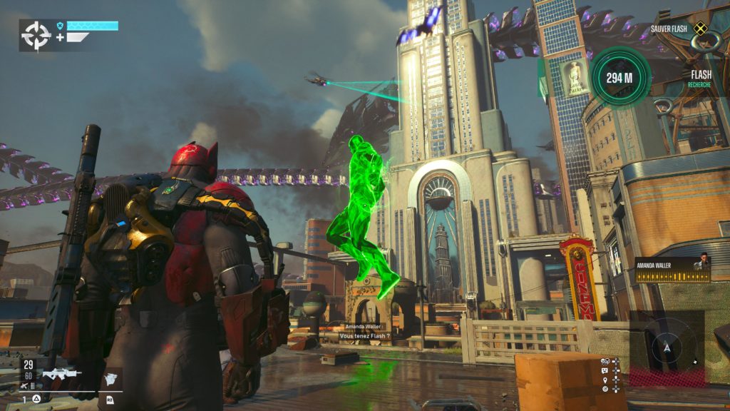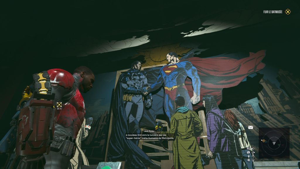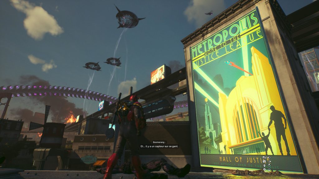 Graphiquement, « Suicide Squad: Kill the Justice League » est plutôt aguicheur, il faut l’avouer. Les environnements de Metropolis sont vastes et détaillés, offrant une toile de fond impressionnante pour les affrontements épiques entre la Suicide Squad et la Justice League corrompue. La direction artistique ainsi que le level design général est bien plus travaillé que Gotham Knights et sa ville insipide et vide. Les modèles de personnages sont également magnifiquement conçus, avec des animations fluides qui rendent chaque mouvement crédible. Cependant, des problèmes de framerate peuvent parfois survenir lors de situations très chargées, ce qui peut nuire légèrement à l’expérience. Les décors intérieurs sont aussi très sympas, voir même un vrai régal quand on observe les détails, notamment le musée qui est une pépite pour les fans de DC.